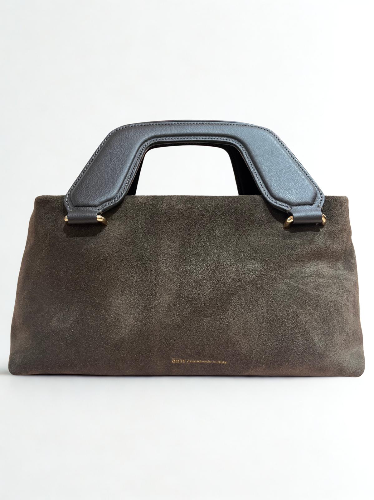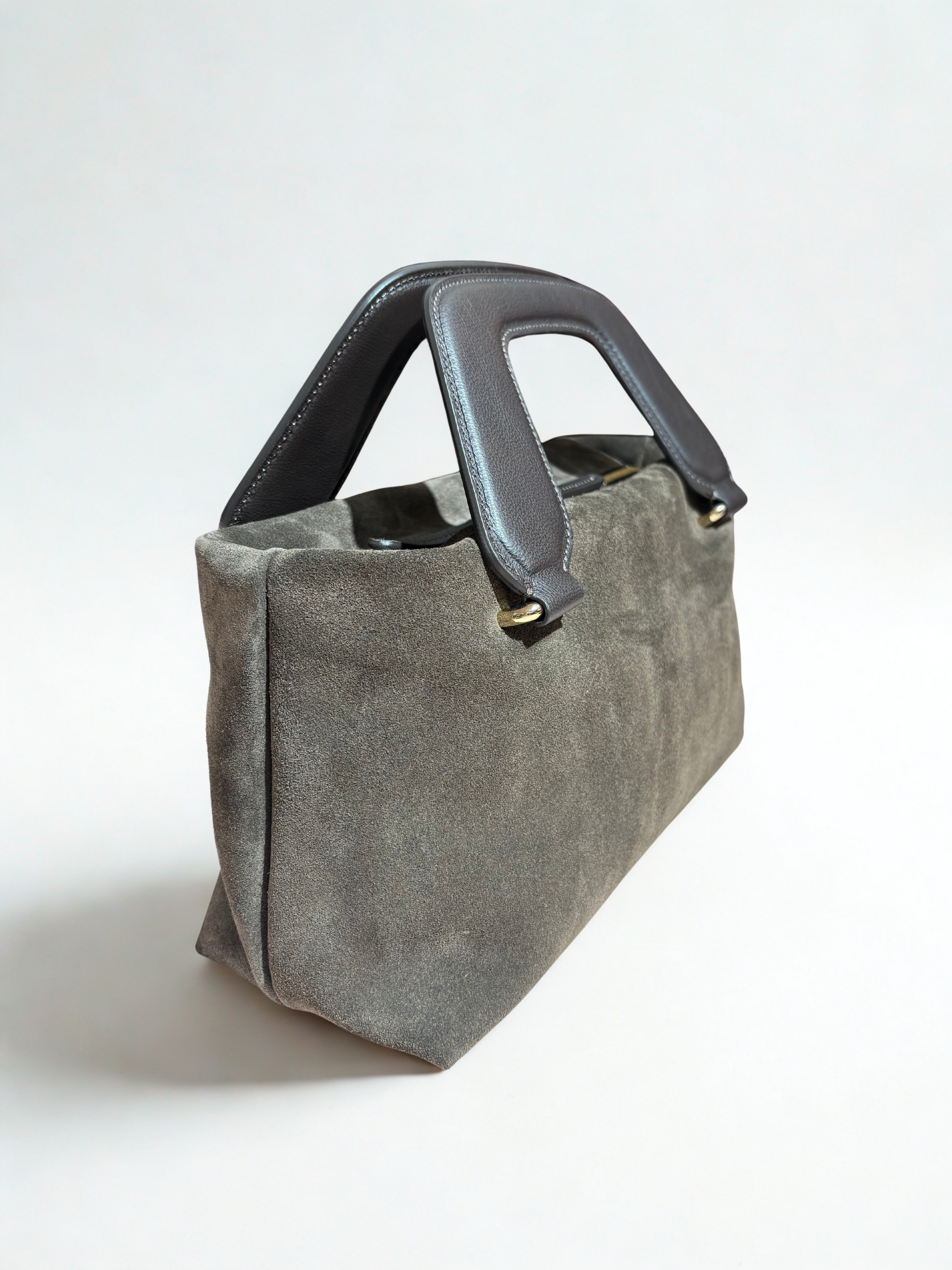 Borsa in suede con manico rigido.
