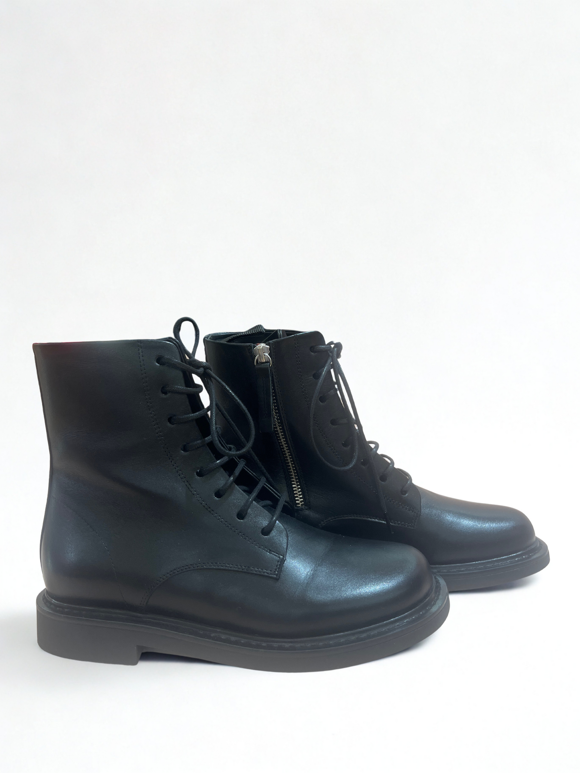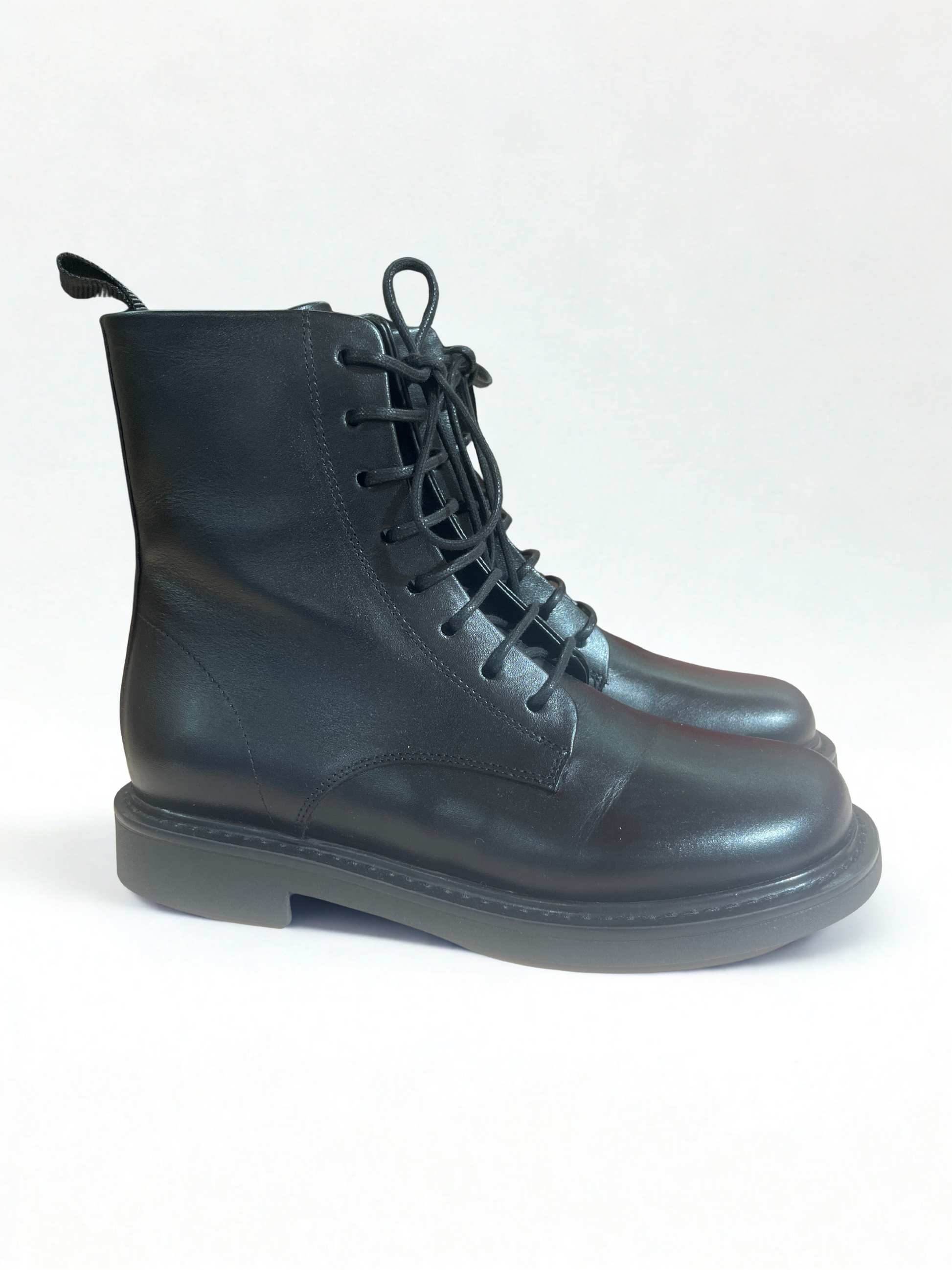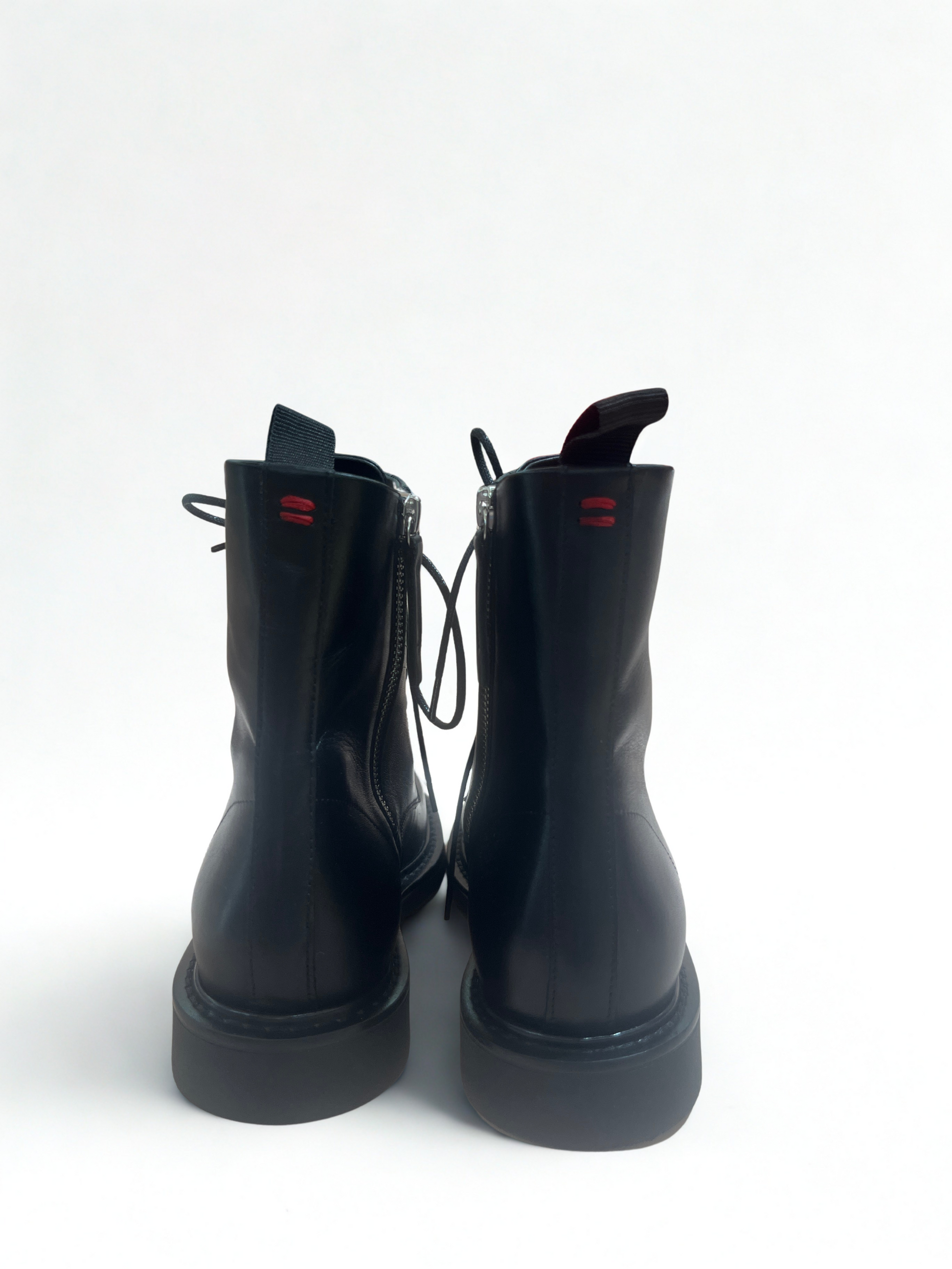 Un must-have dallo stile intramontabile. Questi anfibi in pelle nera uniscono design minimal e spirito contemporaneo, offrendo comfort e carattere in ogni passo. Realizzati in pelle liscia di alta qualità, presentano una chiusura con stringhee una suola piatta in gomma che garantisce stabilità e praticità d’uso. Perfetti per completare look casual, urban o d’ispirazione grunge con un tocco raffinato.