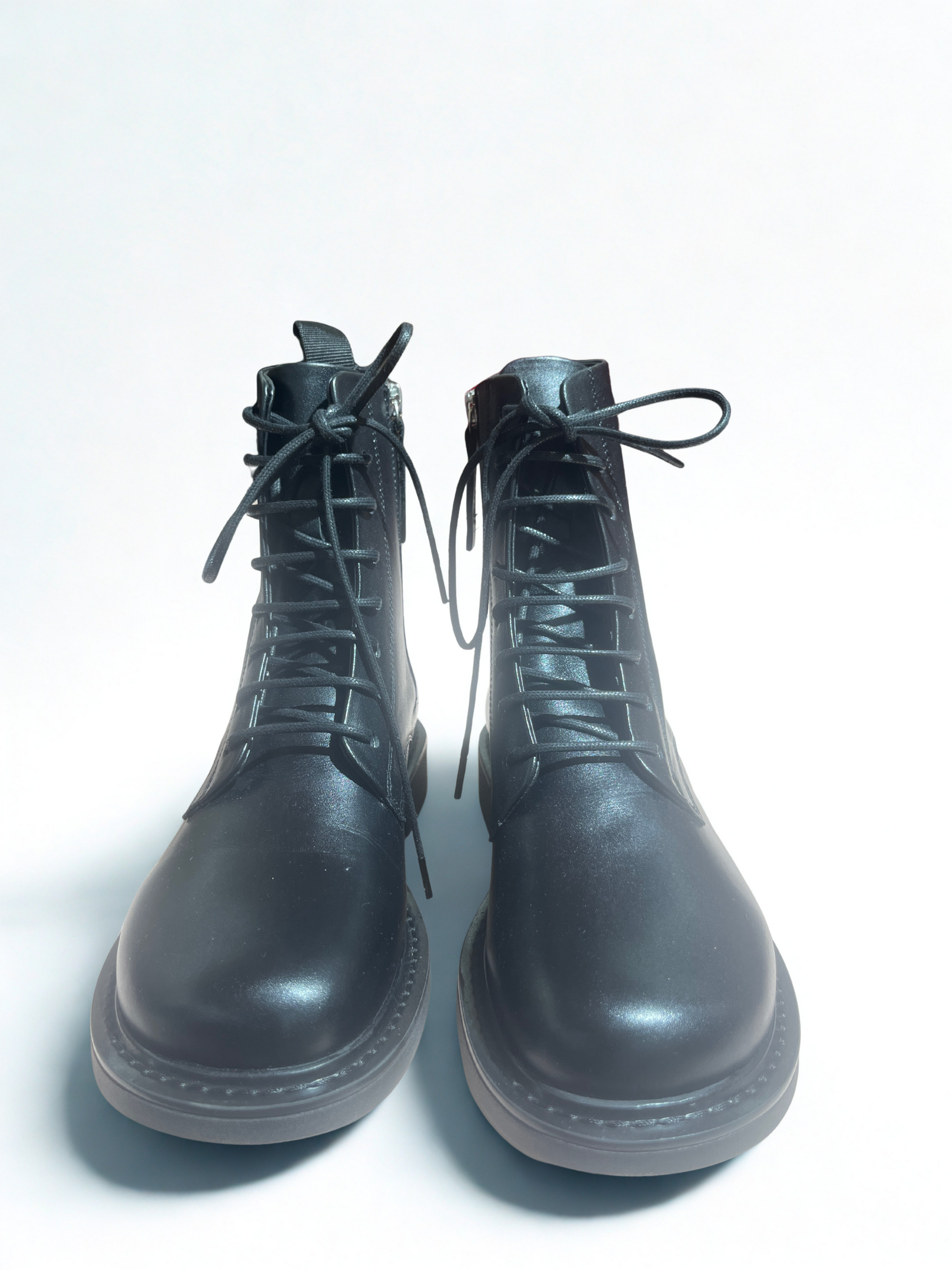 Anfibi in pelle nera con suola piatta