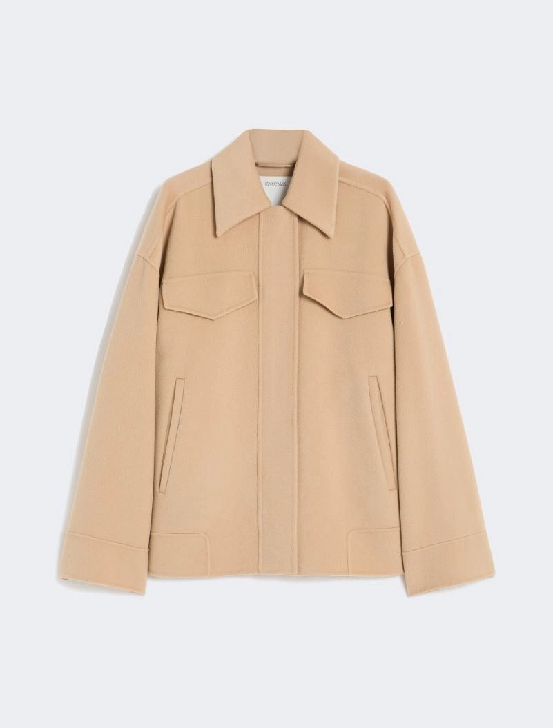 Ispirazione bomber per questo caban in morbido double di lana. Modello con cintura sottile in vera pelle e fibbia a S in metallo dorato.