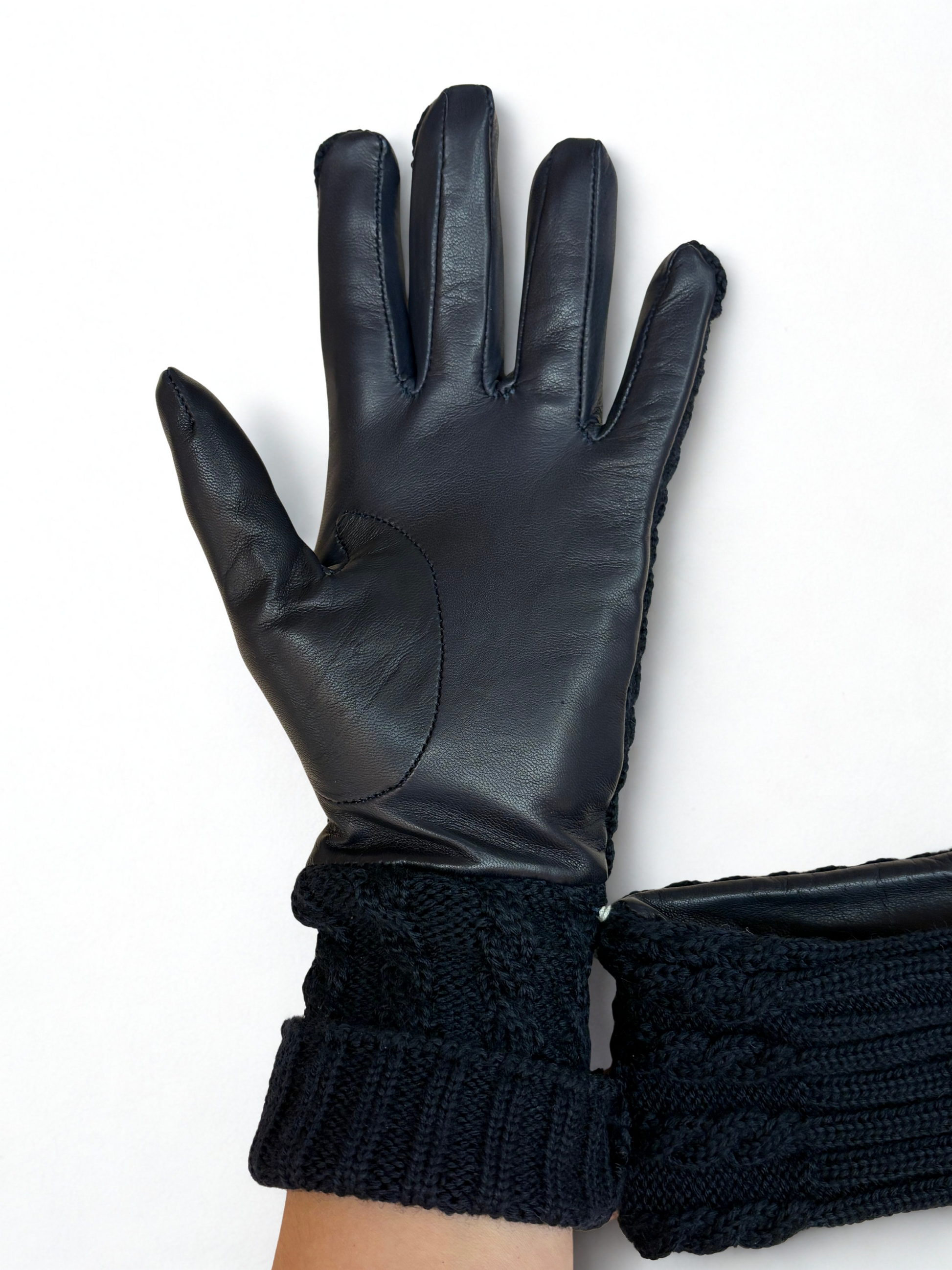 Raffinati e senza tempo, questi guanti in lana e pelle uniscono comfort e stile in un unico accessorio. Il dorso in morbida lana lavorata a trecce offre calore e un tocco artigianale, mentre il palmo in pelle liscia assicura eleganza e resistenza.