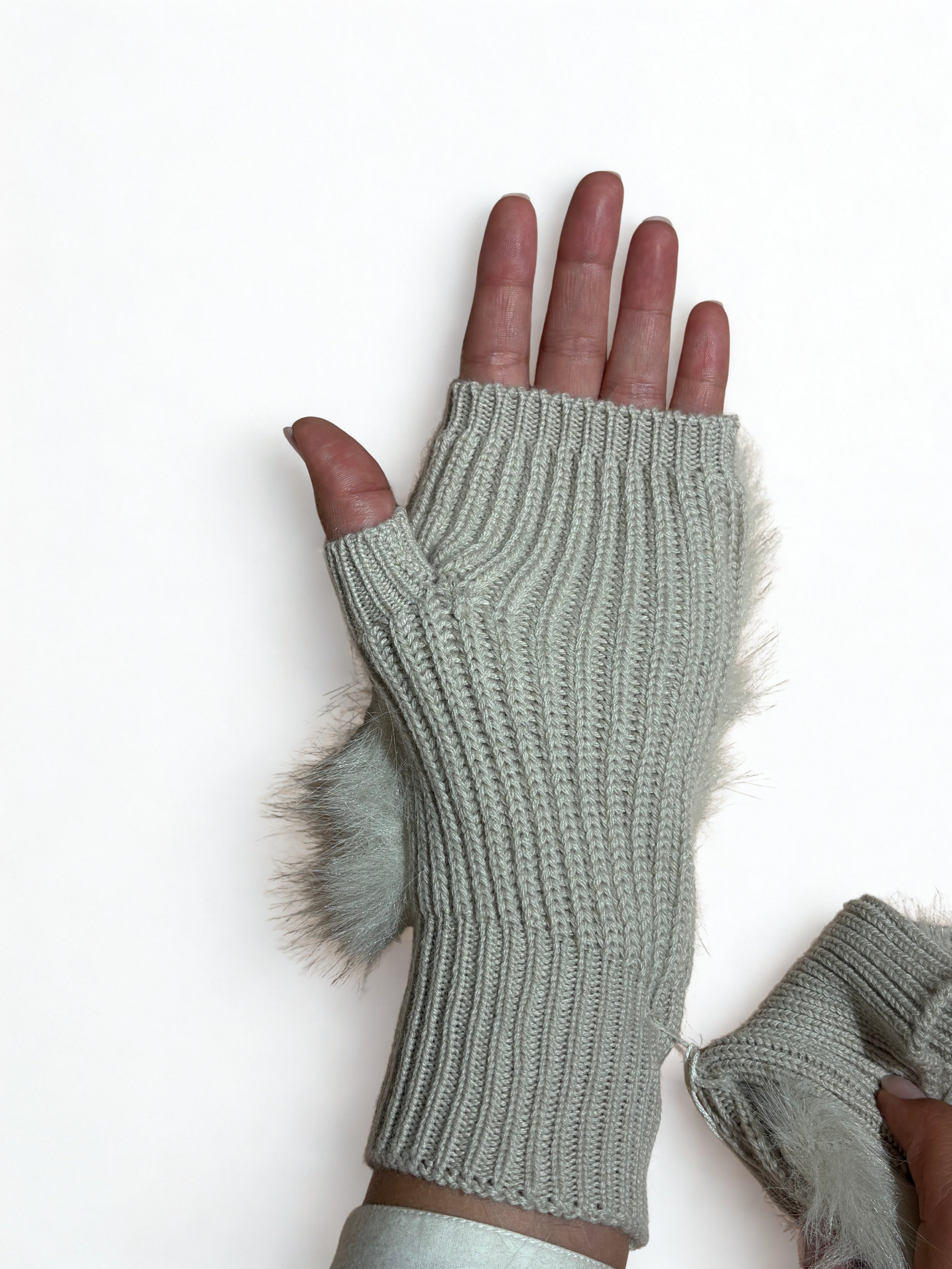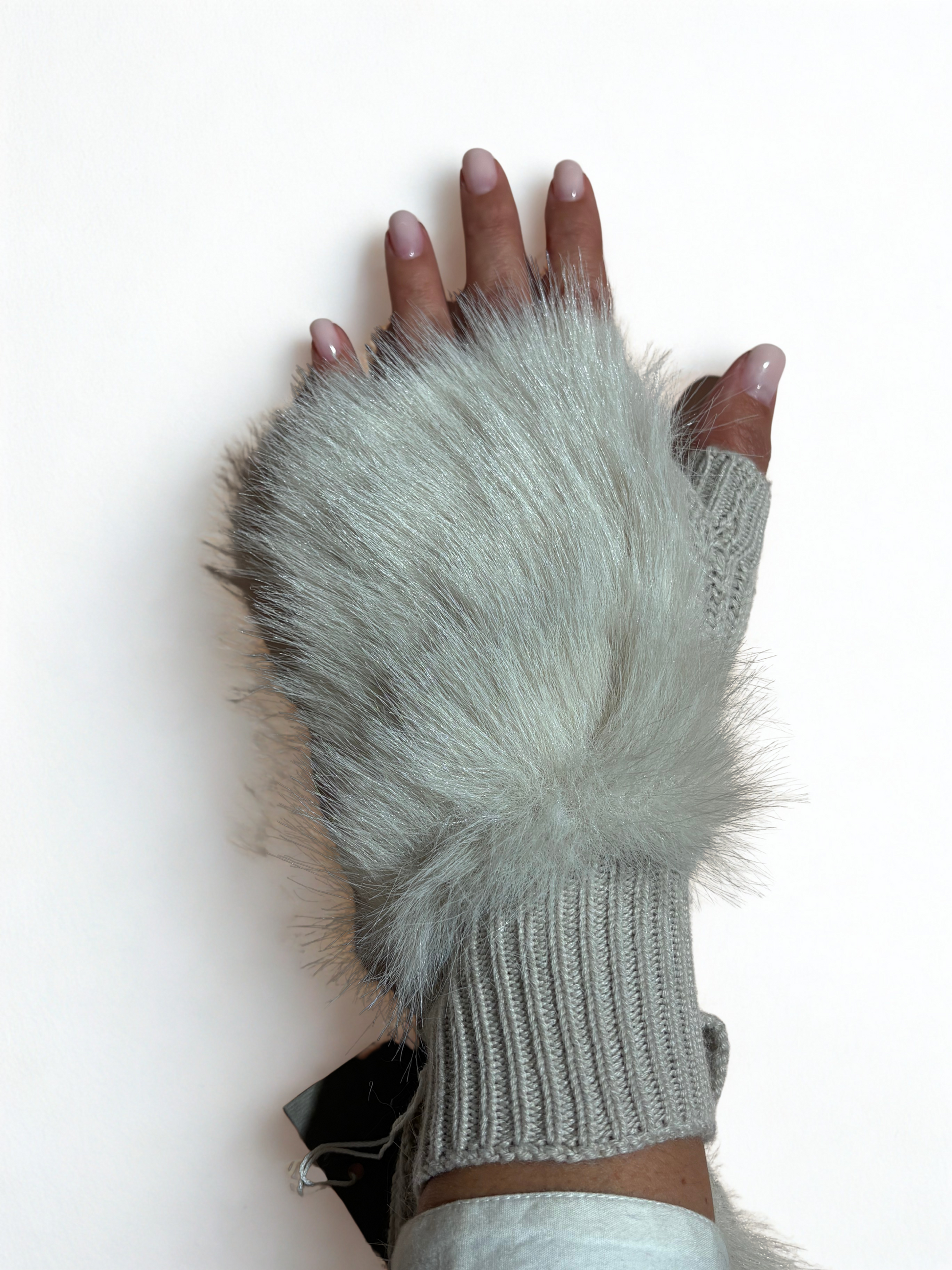 Guanti in Lana con Dettaglio in Ecopelliccia – Grigio Perla