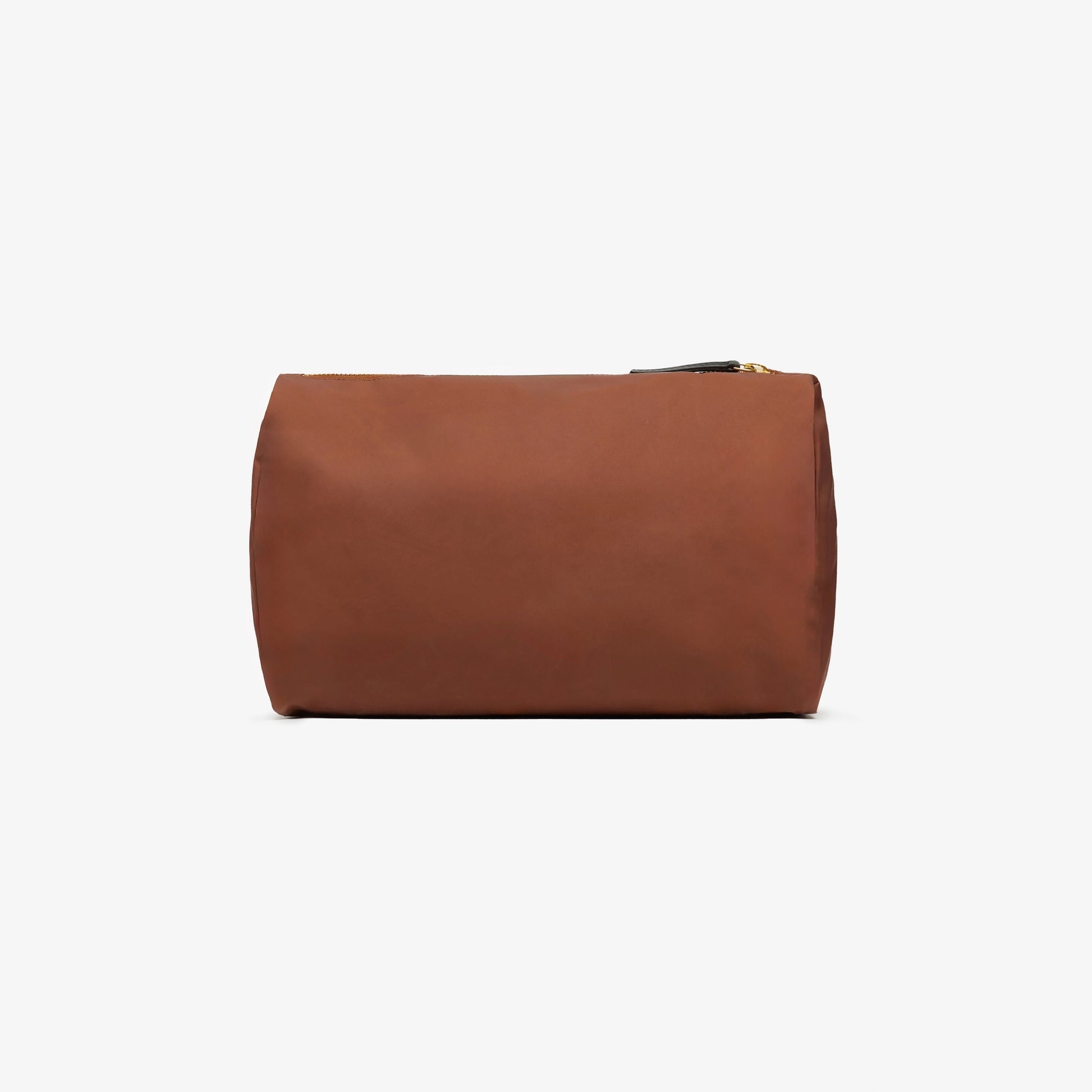 Leggero, morbido e adattabile, il kit in nylon è disponibile in due misure. È funzionale grazie al tessuto tecnico in poliestere riciclato che si adatta a tutti i volumi. La più grande ha due tasche interne funzionali, di cui una con zip.