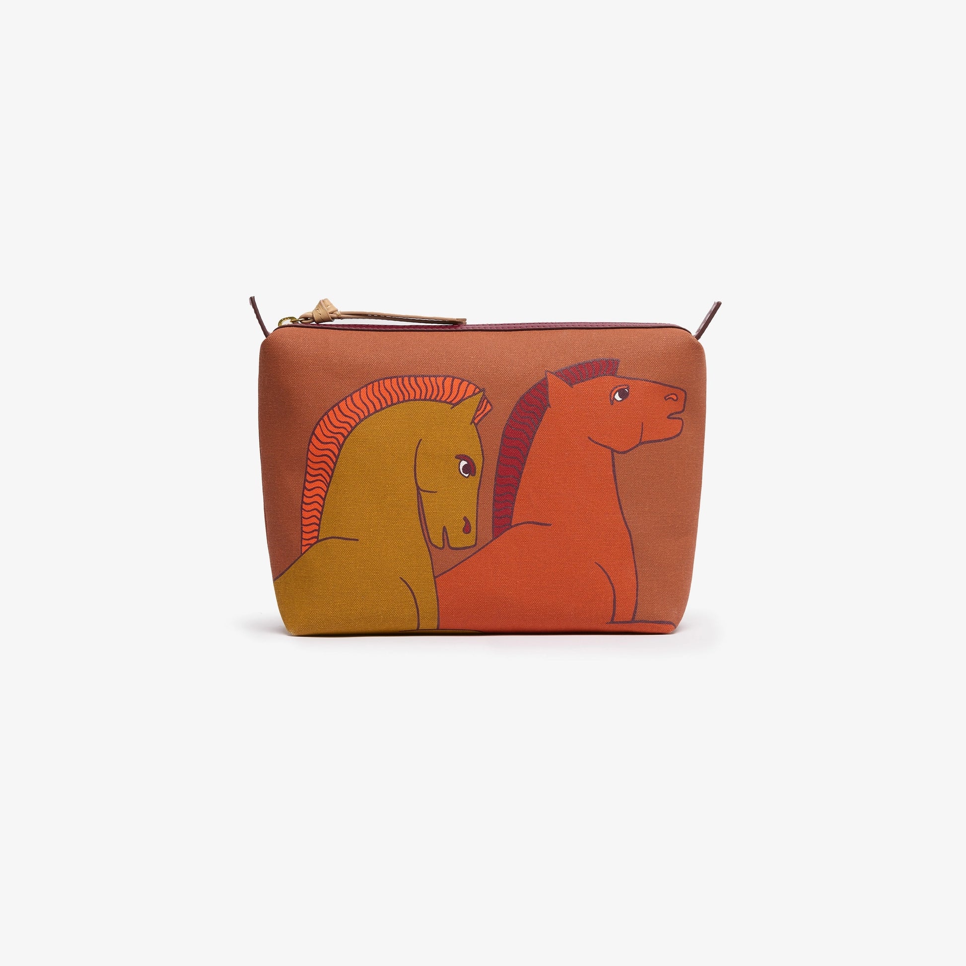 La borsa City Tasca è una spaziosa custodia in cotone stampato con dettagli in pelle italiana. Può essere utilizzata come pochette o borsa da toilette.
