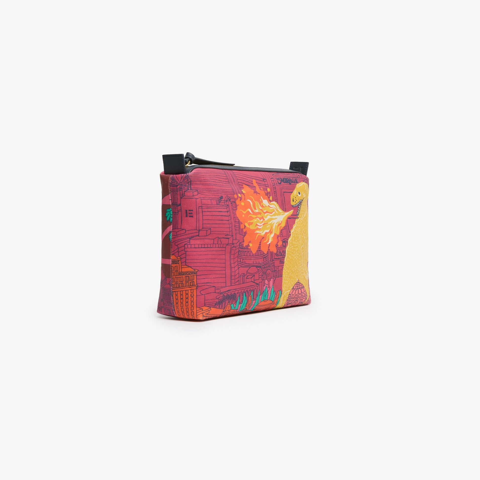 La borsa City Tasca è una spaziosa custodia in cotone stampato con dettagli in pelle italiana. Può essere utilizzata come pochette o borsa da toilette.