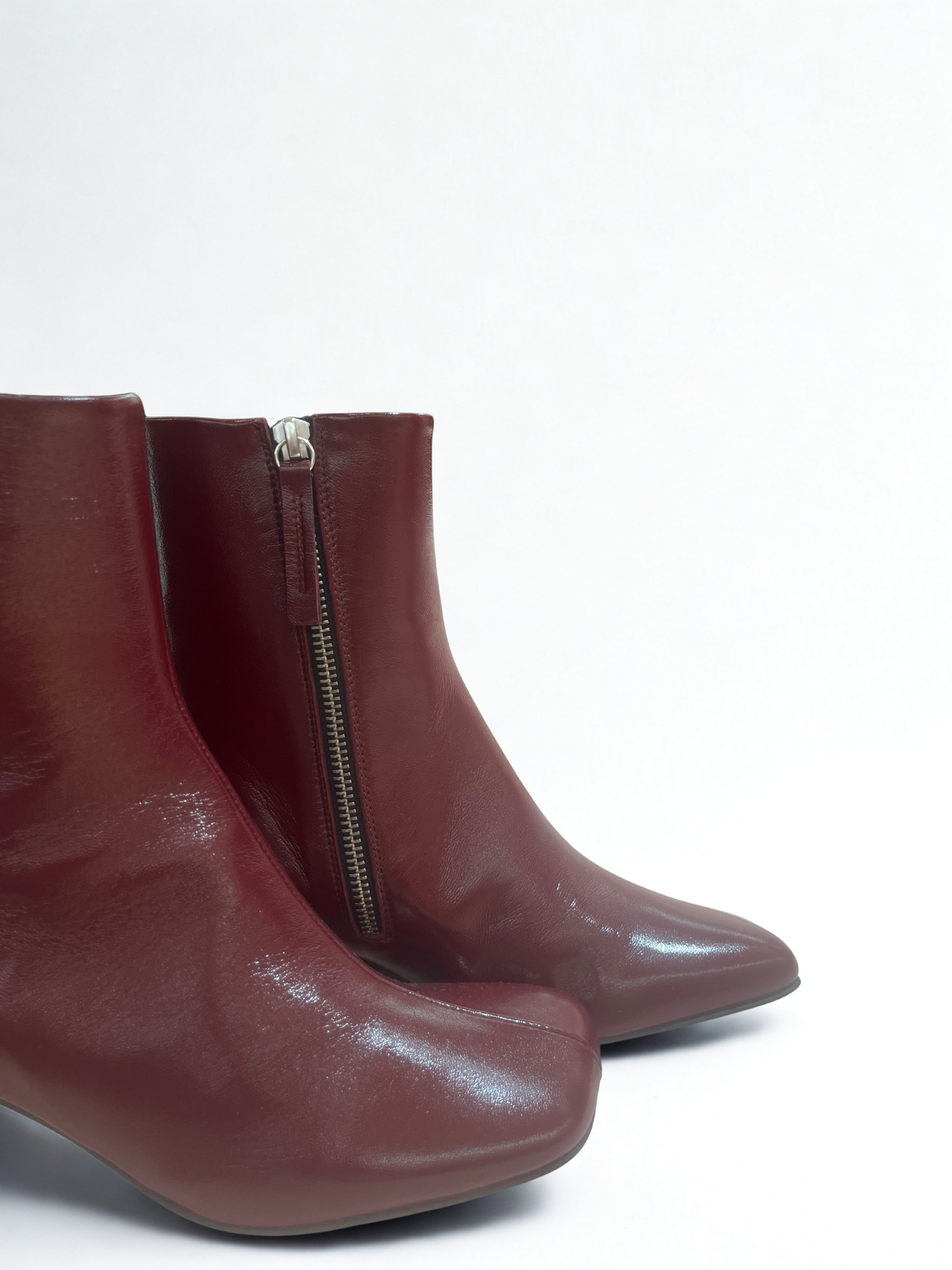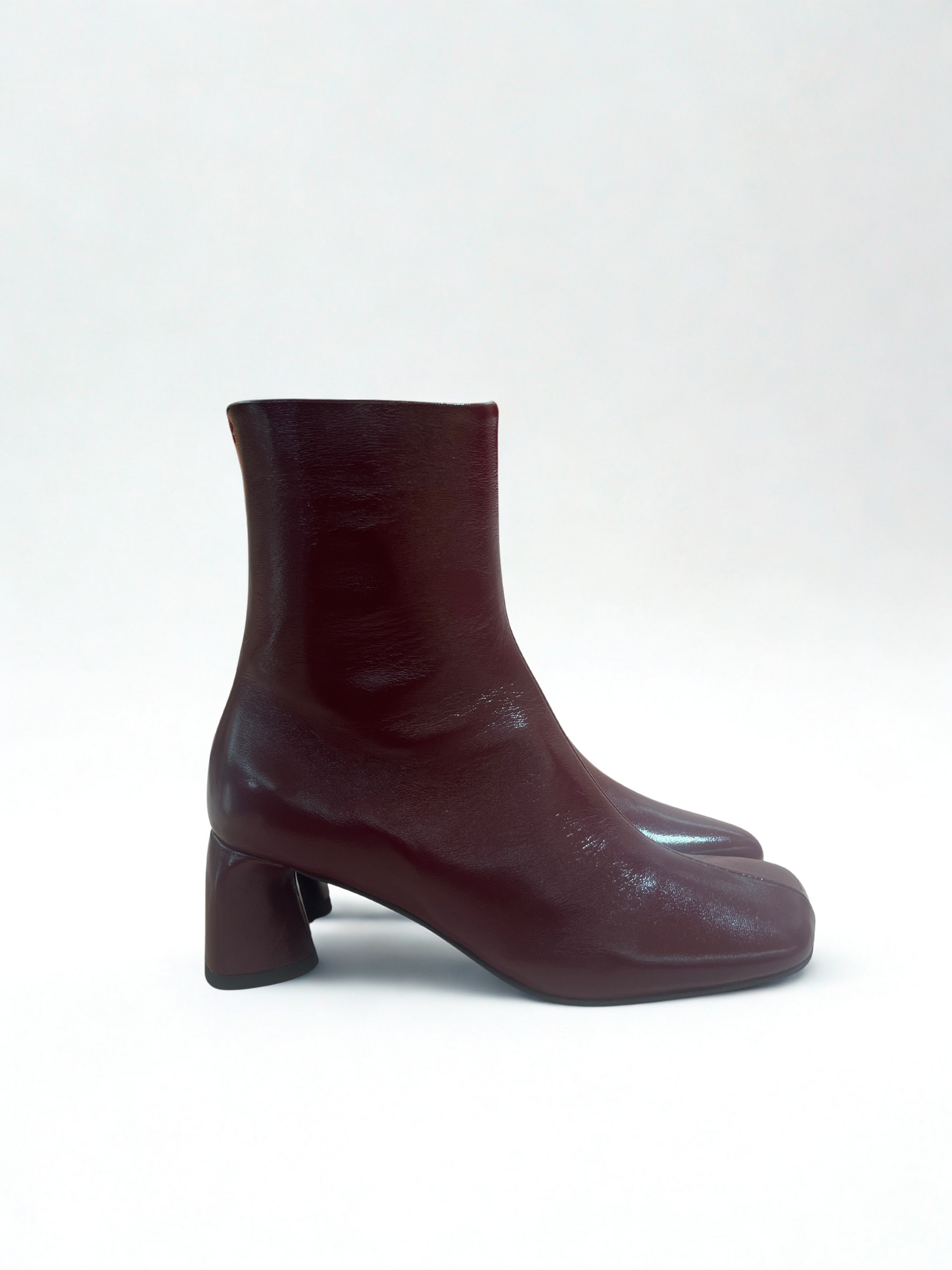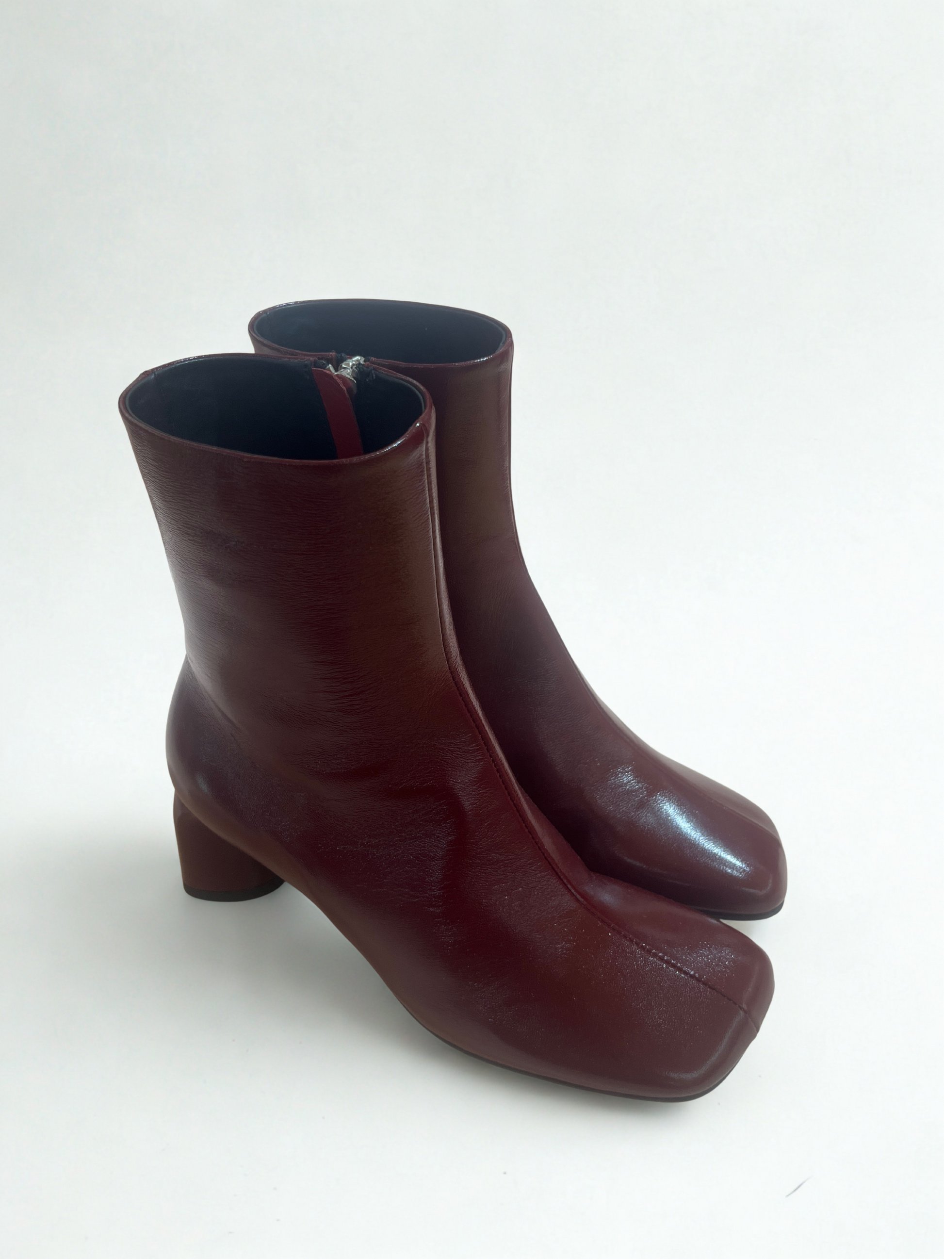 Stivaletti in pelle bordeaux con punta squadrata