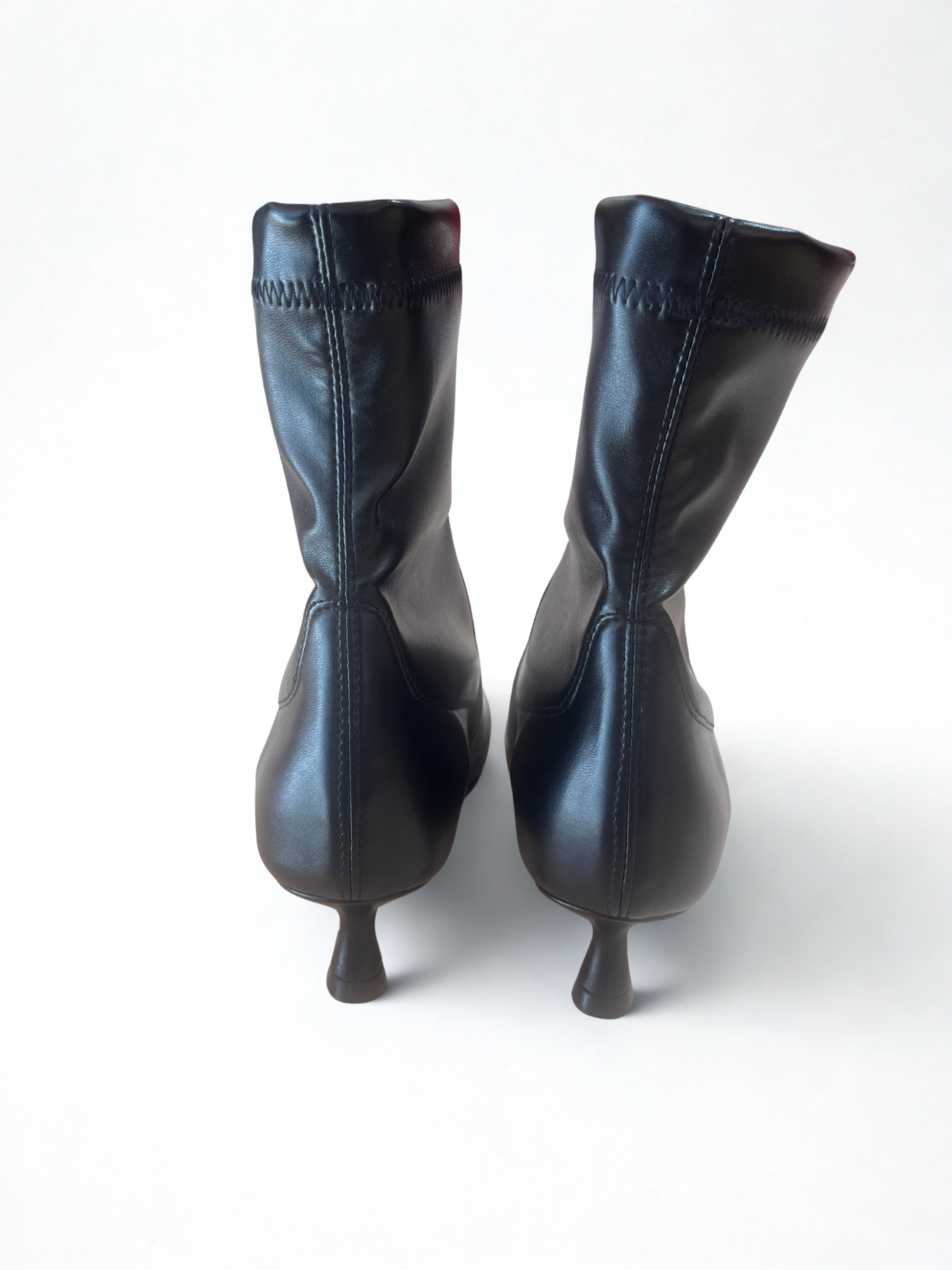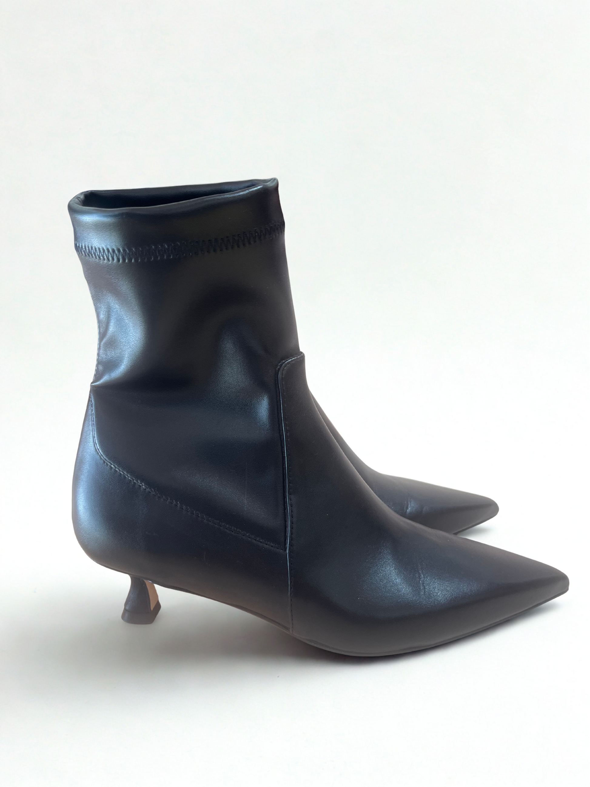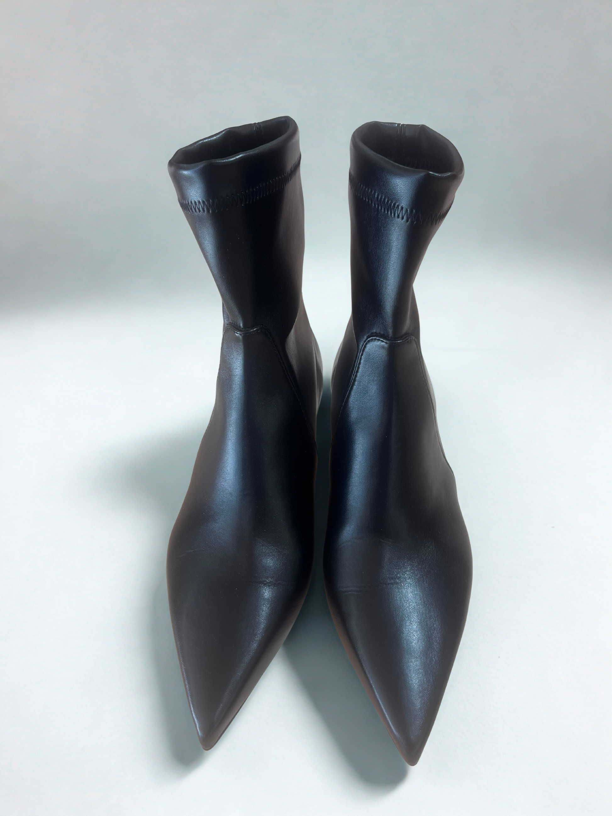 Stivaletti a punta in pelle nera effetto calza