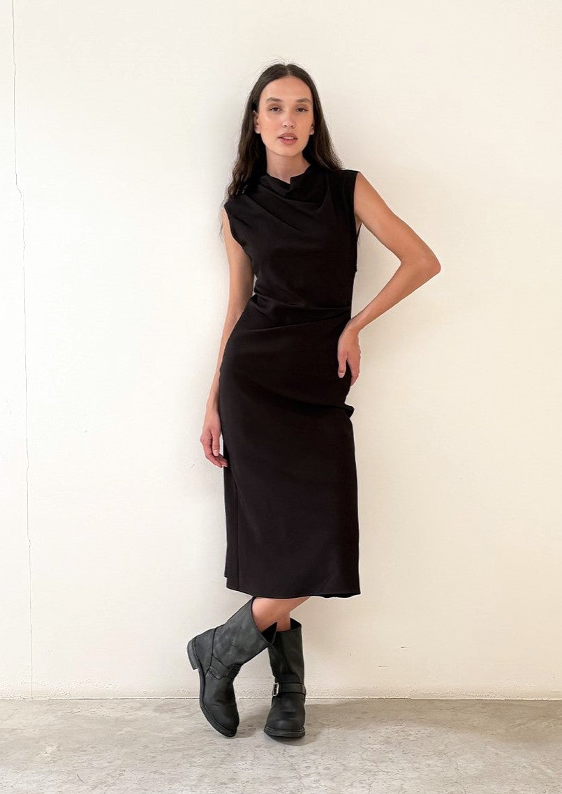 ABITO TUBINO MIDI CON ARRICCIO LATERALE E COLLO MORBIDO. VESTIBILITÀ REGOLARE.